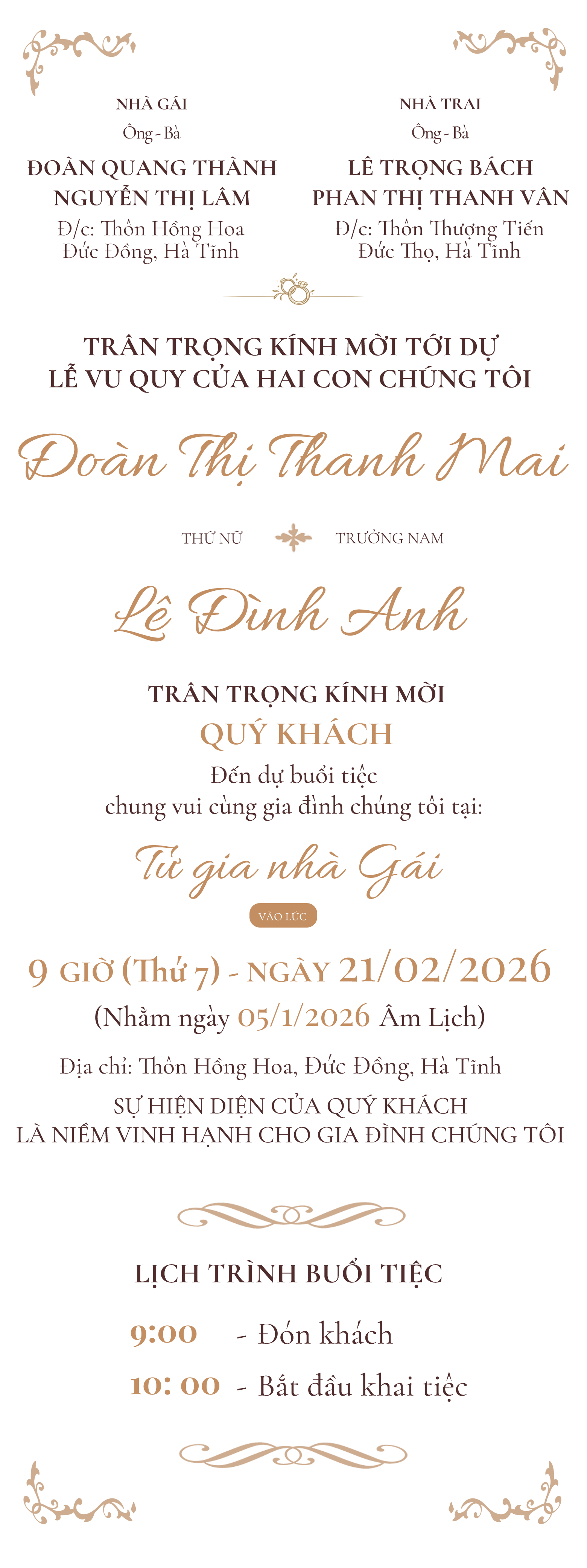 Để gia đình chuẩn bị chu toàn nhất, Quý khách hãy xác nhận sự tham gia. Hãy cho Dâu Rể biết bạn có tham dự được không